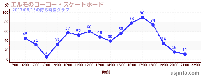 • エルモのゴーゴー・スケートボード$B$N(B2017年08月15日の待ち時間