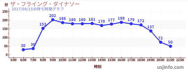 • ザ・フライング・ダイナソー$B$N(B2017年08月15日の待ち時間