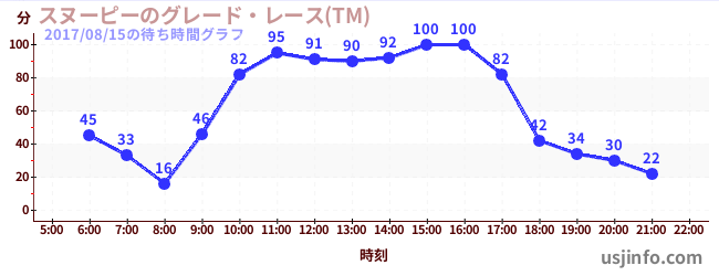 • スヌーピーのグレード・レース(TM)$B$N(B2017年08月15日の待ち時間