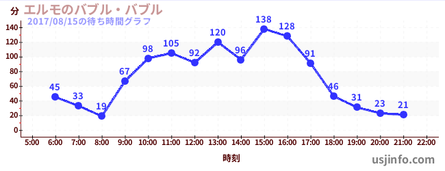 • エルモのバブル・バブル$B$N(B2017年08月15日の待ち時間