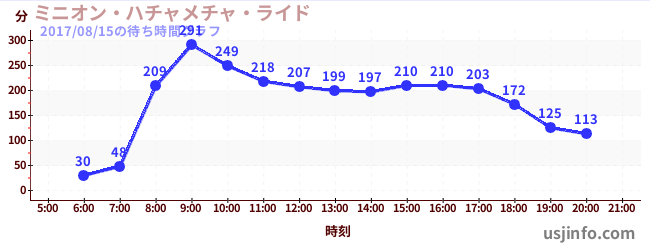 • ミニオン・ハチャメチャ・ライド$B$N(B2017年08月15日の待ち時間