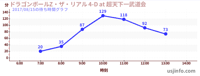 • ドラゴンボールZ・ザ・リアル 4-D at 超天下一武道会$B$N(B2017年08月15日の待ち時間