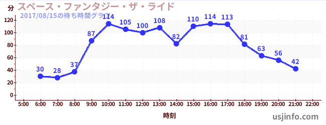 • スペース・ファンタジー・ザ・ライド$B$N(B2017年08月15日の待ち時間