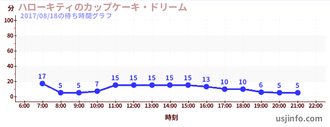 • ハローキティのカップケーキ・ドリーム$B$N(B2017年08月18日の待ち時間