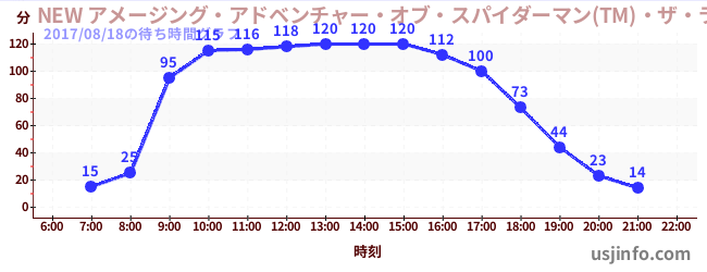 • NEW アメージング・アドベンチャー・オブ・スパイダーマン(TM)・ザ・ライド 4K3D$B$N(B2017年08月18日の待ち時間
