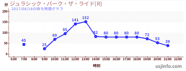 • ジュラシック・パーク・ザ・ライド(R)$B$N(B2017年08月18日の待ち時間