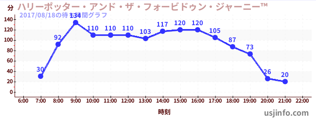 • ハリーポッター・アンド・ザ・フォービドゥン・ジャーニー™$B$N(B2017年08月18日の待ち時間