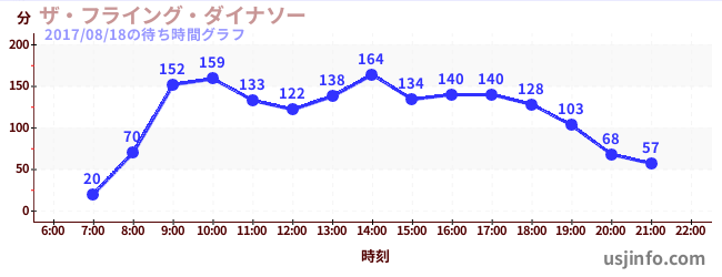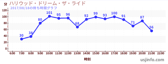 • ハリウッド・ドリーム・ザ・ライド$B$N(B2017年08月18日の待ち時間