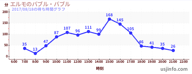 • エルモのバブル・バブル$B$N(B2017年08月18日の待ち時間