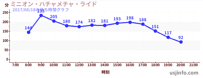 • ミニオン・ハチャメチャ・ライド$B$N(B2017年08月18日の待ち時間