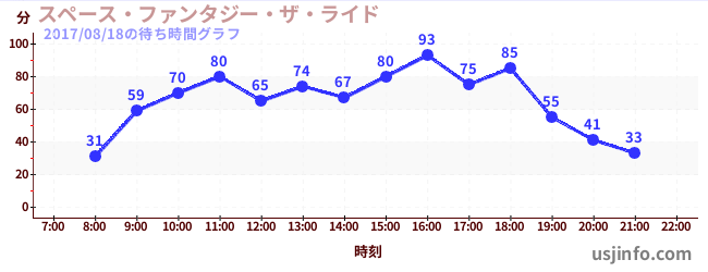 • スペース・ファンタジー・ザ・ライド$B$N(B2017年08月18日の待ち時間