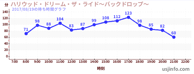 • ハリウッド・ドリーム・ザ・ライド〜バックドロップ〜$B$N(B2017年08月19日の待ち時間
