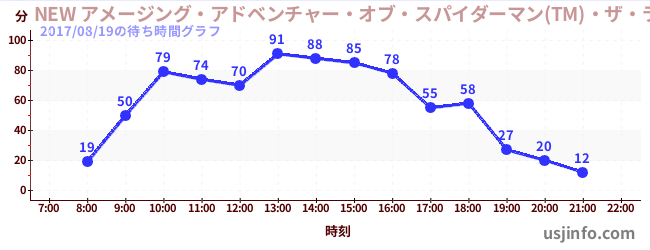 • NEW アメージング・アドベンチャー・オブ・スパイダーマン(TM)・ザ・ライド 4K3D$B$N(B2017年08月19日の待ち時間