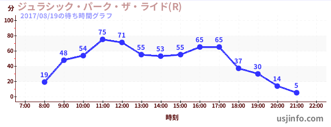 • ジュラシック・パーク・ザ・ライド(R)$B$N(B2017年08月19日の待ち時間