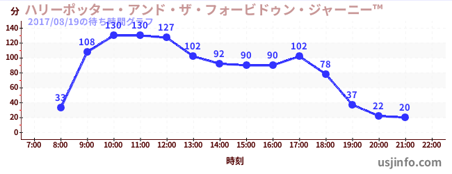 • ハリーポッター・アンド・ザ・フォービドゥン・ジャーニー™$B$N(B2017年08月19日の待ち時間