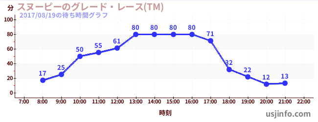 • スヌーピーのグレード・レース(TM)$B$N(B2017年08月19日の待ち時間