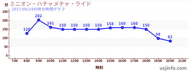 • ミニオン・ハチャメチャ・ライド$B$N(B2017年08月19日の待ち時間