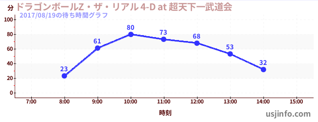 • ドラゴンボールZ・ザ・リアル 4-D at 超天下一武道会$B$N(B2017年08月19日の待ち時間