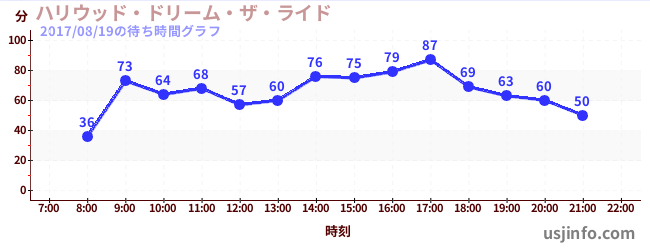 • ハリウッド・ドリーム・ザ・ライド$B$N(B2017年08月19日の待ち時間