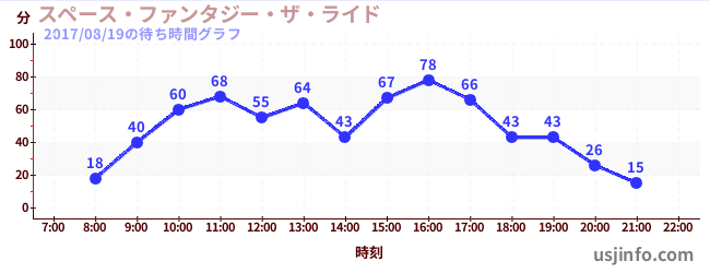 • スペース・ファンタジー・ザ・ライド$B$N(B2017年08月19日の待ち時間