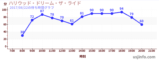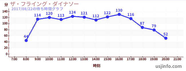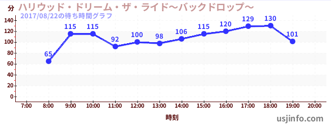 • ハリウッド・ドリーム・ザ・ライド〜バックドロップ〜$B$N(B2017年08月22日の待ち時間