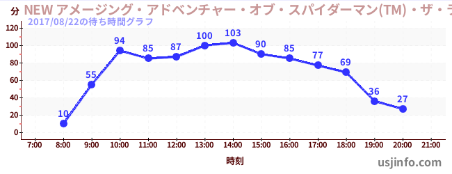 • NEW アメージング・アドベンチャー・オブ・スパイダーマン(TM)・ザ・ライド 4K3D$B$N(B2017年08月22日の待ち時間