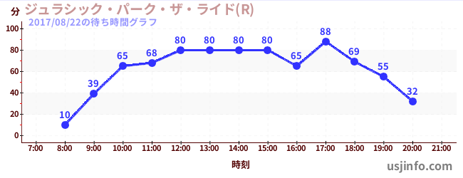 • ジュラシック・パーク・ザ・ライド(R)$B$N(B2017年08月22日の待ち時間