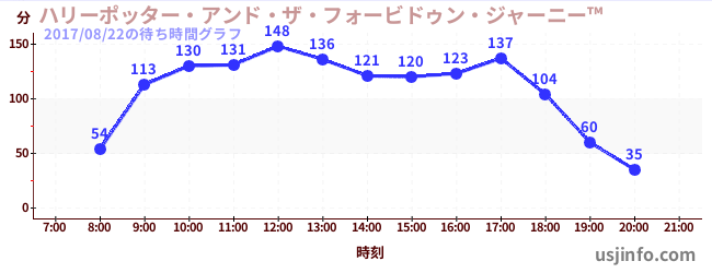 • ハリーポッター・アンド・ザ・フォービドゥン・ジャーニー™$B$N(B2017年08月22日の待ち時間