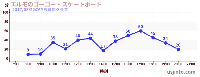 • エルモのゴーゴー・スケートボード$B$N(B2017年08月22日の待ち時間