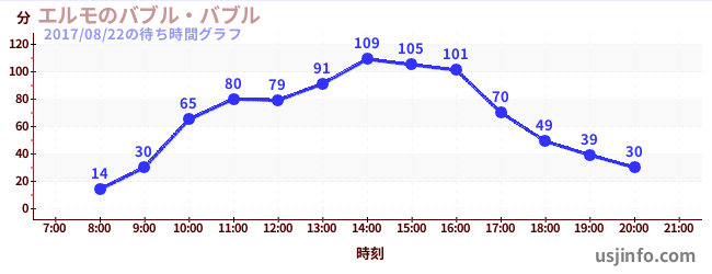 • エルモのバブル・バブル$B$N(B2017年08月22日の待ち時間
