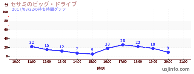 • セサミのビッグ・ドライブ$B$N(B2017年08月22日の待ち時間