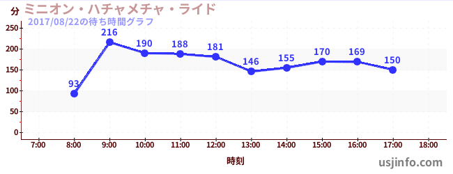 • ミニオン・ハチャメチャ・ライド$B$N(B2017年08月22日の待ち時間