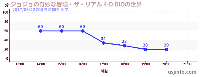 • ジョジョの奇妙な冒険・ザ・リアル 4-D DIOの世界$B$N(B2017年08月22日の待ち時間