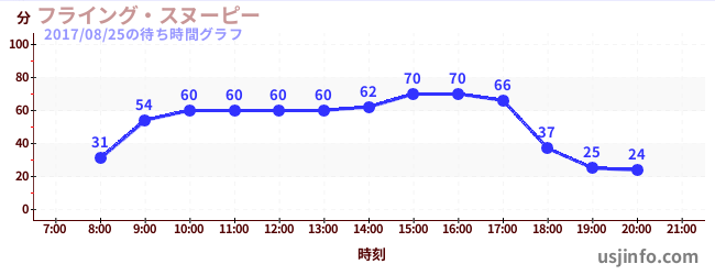 • フライング・スヌーピー$B$N(B2017年08月25日の待ち時間