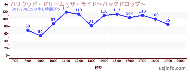 • ハリウッド・ドリーム・ザ・ライド〜バックドロップ〜$B$N(B2017年08月25日の待ち時間