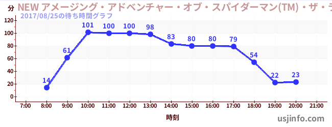 • NEW アメージング・アドベンチャー・オブ・スパイダーマン(TM)・ザ・ライド 4K3D$B$N(B2017年08月25日の待ち時間