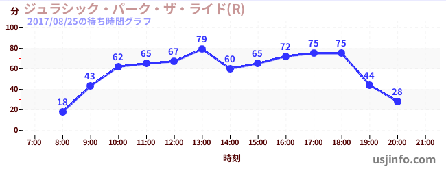 • ジュラシック・パーク・ザ・ライド(R)$B$N(B2017年08月25日の待ち時間