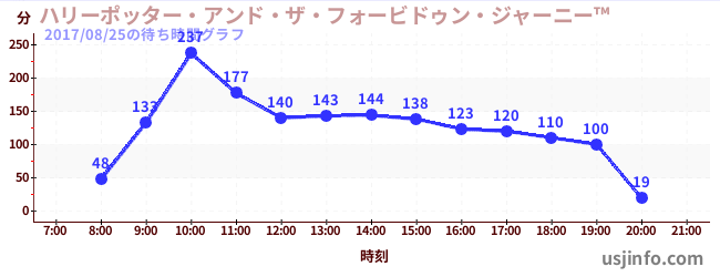 • ハリーポッター・アンド・ザ・フォービドゥン・ジャーニー™$B$N(B2017年08月25日の待ち時間