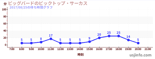 • ビッグバードのビックトップ・サーカス$B$N(B2017年08月25日の待ち時間