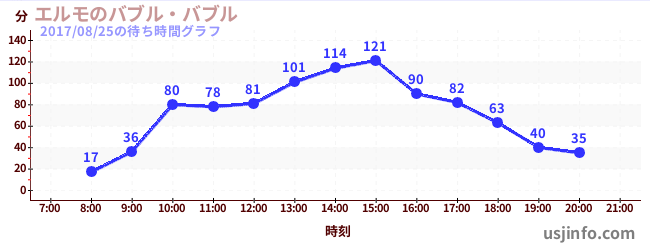 • エルモのバブル・バブル$B$N(B2017年08月25日の待ち時間
