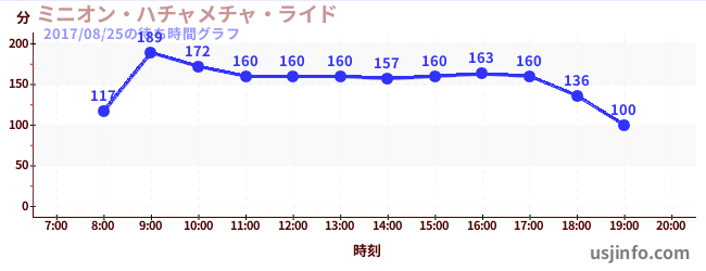 • ミニオン・ハチャメチャ・ライド$B$N(B2017年08月25日の待ち時間
