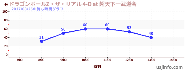 • ドラゴンボールZ・ザ・リアル 4-D at 超天下一武道会$B$N(B2017年08月25日の待ち時間