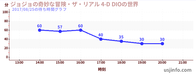• ジョジョの奇妙な冒険・ザ・リアル 4-D DIOの世界$B$N(B2017年08月25日の待ち時間