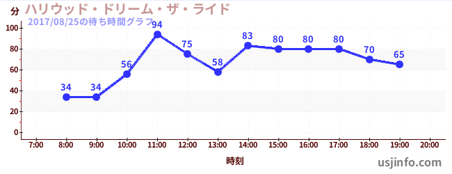 • ハリウッド・ドリーム・ザ・ライド$B$N(B2017年08月25日の待ち時間