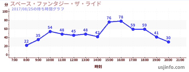 • スペース・ファンタジー・ザ・ライド$B$N(B2017年08月25日の待ち時間