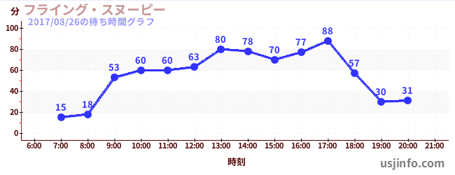 • フライング・スヌーピー$B$N(B2017年08月26日の待ち時間