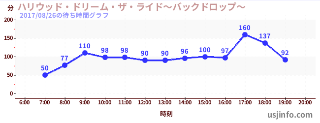 • ハリウッド・ドリーム・ザ・ライド〜バックドロップ〜$B$N(B2017年08月26日の待ち時間