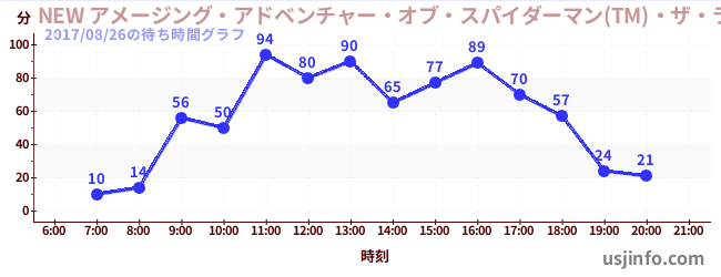 • NEW アメージング・アドベンチャー・オブ・スパイダーマン(TM)・ザ・ライド 4K3D$B$N(B2017年08月26日の待ち時間