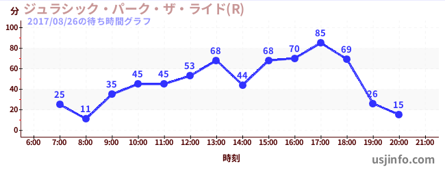 • ジュラシック・パーク・ザ・ライド(R)$B$N(B2017年08月26日の待ち時間