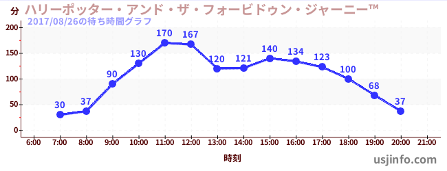 • ハリーポッター・アンド・ザ・フォービドゥン・ジャーニー™$B$N(B2017年08月26日の待ち時間